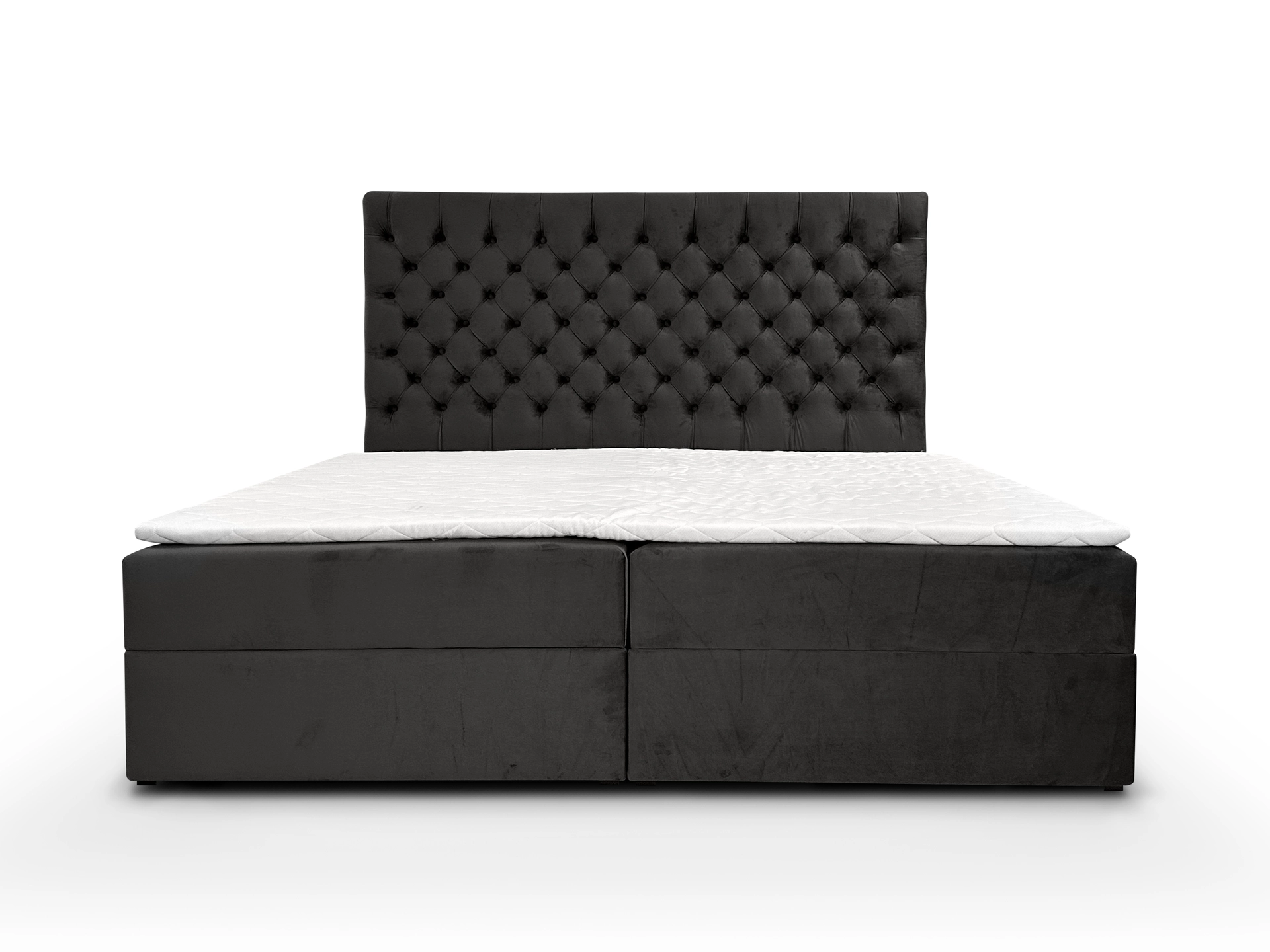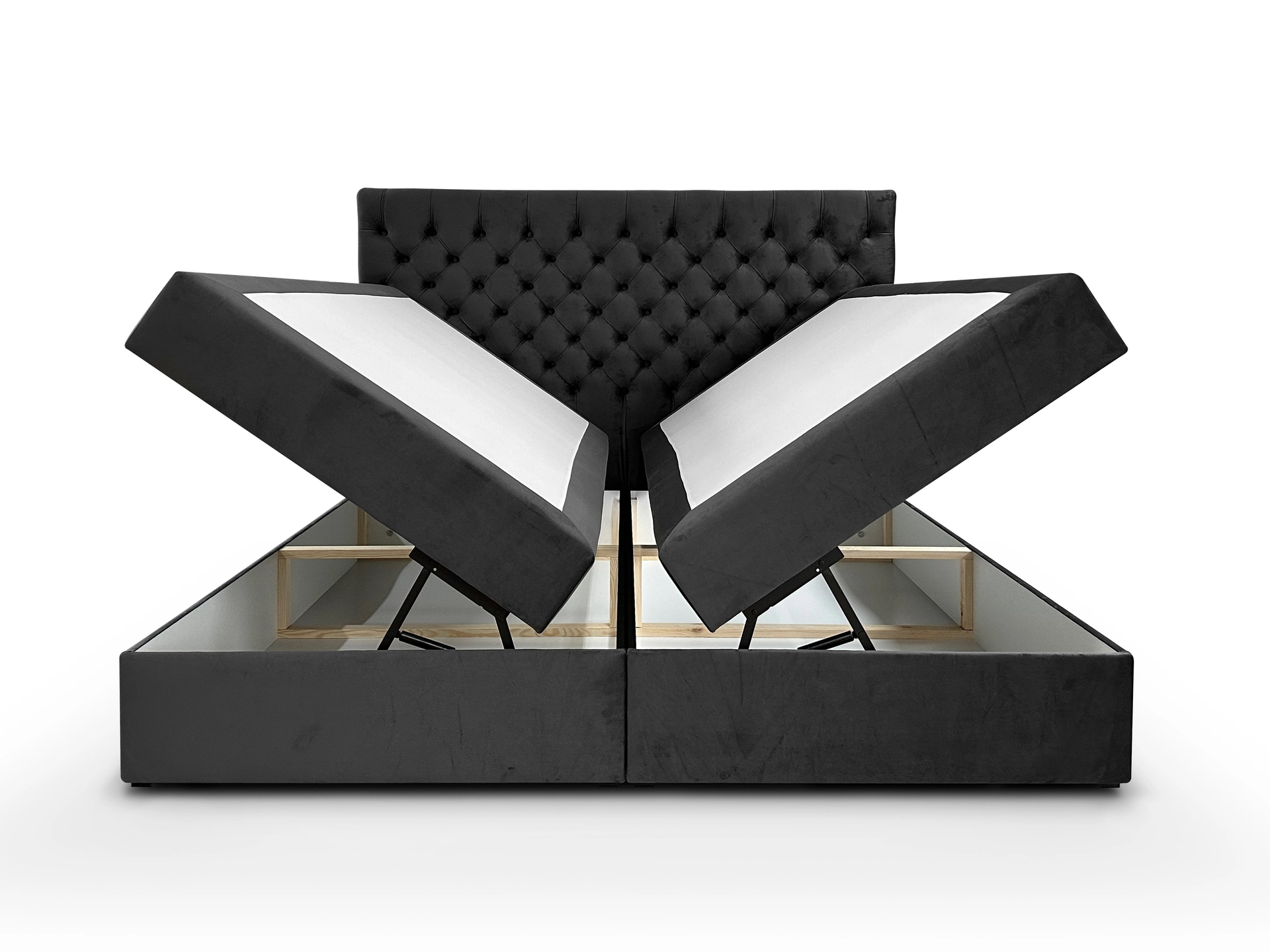 • Constructie: De bedstructuur is gebaseerd op 15 mm hoge driehoekige glijders, die zorgen voor luchtcirculatie onder het bed. Het frame is gemaakt van 16 mm dik spaanplaat, versterkt met houten elementen. Alles bedekt met T25 schuim. Beddengoedboxen gemaakt van 16 mm spaanplaat, in wit laminaat. Het bed is voorzien van automatische gasflessen om te helpen bij het openen van de beddingboxen. Het bed bestaat uit een ingebouwde bonell- of pocketmatras (naar keuze), die aan de bovenkant is dichtgenaaid met Anty Slip stof om te voorkomen dat de topper verschuift. Het gestoffeerde bed is verkrijgbaar in de maten 120×200 cm, 140×200 cm, 160×200 cm, 180×200 cm, 200×200 cm.