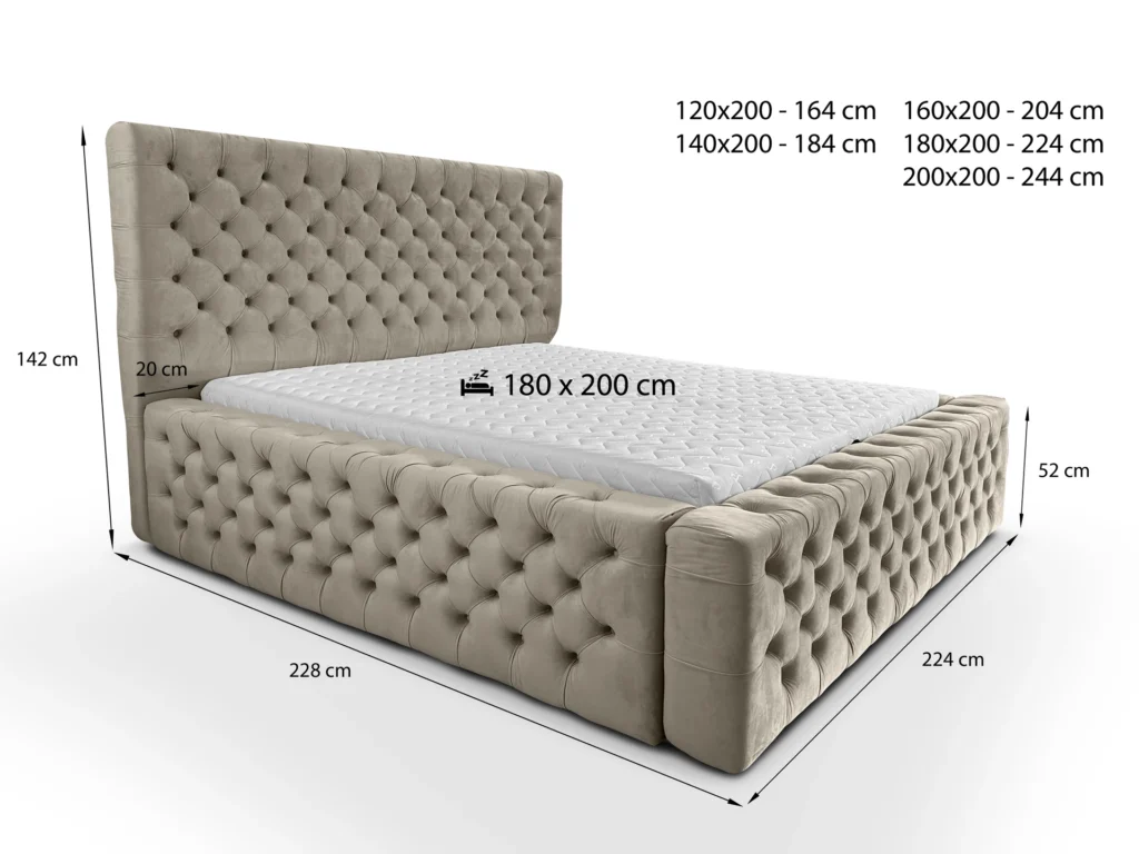 Het Chesterfield III Lux slaapkamerbed maakt indruk met zijn stijl en comfort. Het is de perfecte keuze voor wie op zoek is naar een combinatie van traditioneel design en comfort. De dichte quilting voegt elegantie toe aan het interieur.