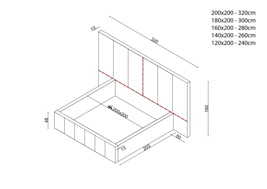 Maattolerantie +/- 2 cm. Hoogte hoofdsteun hetzelfde voor elke bedmaat.