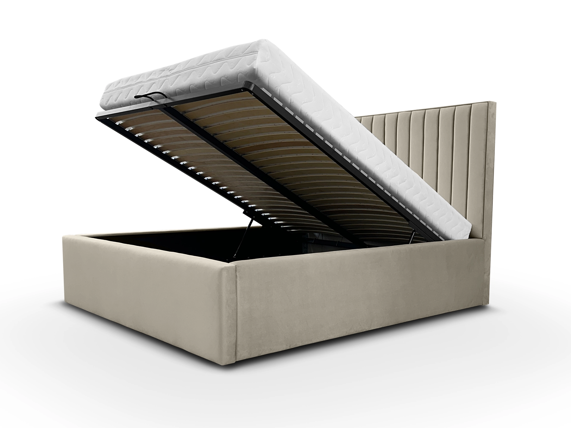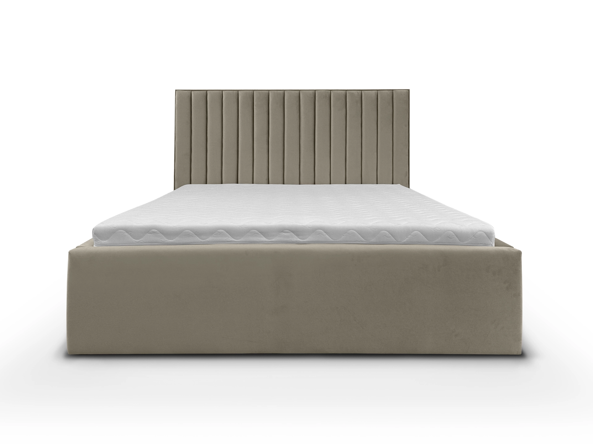 Het elegante ontwerp van het gestoffeerde bed Maya Lux benadrukt het luxueuze karakter van je slaapkamer. De vele verticale panelen op het hoofdeinde geven het een unieke charme.