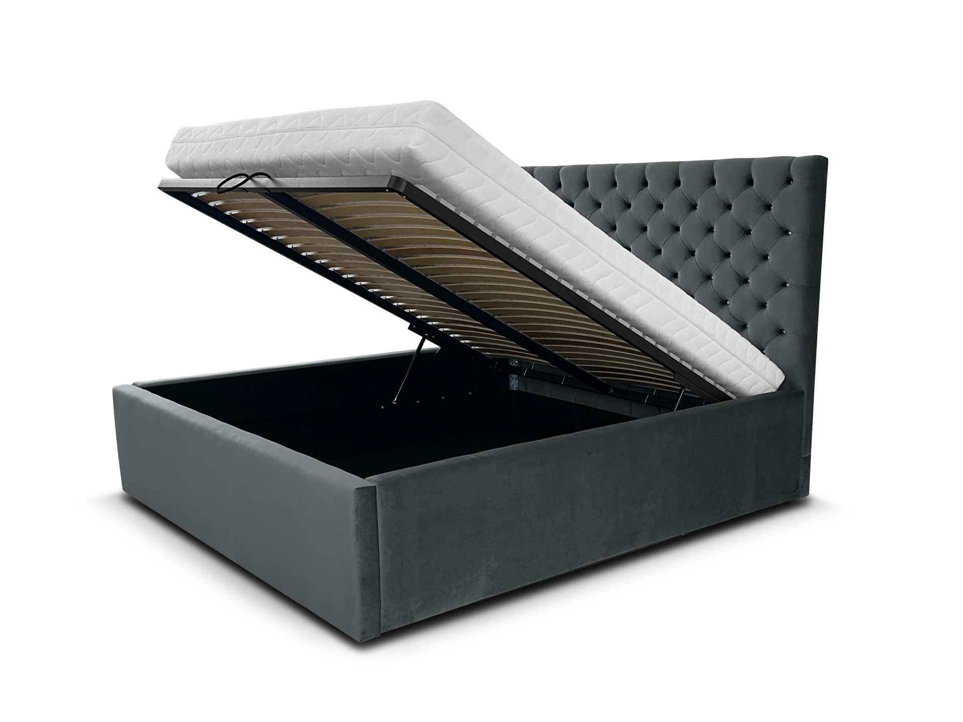 Het gestoffeerde bed Ruby zal je interieur transformeren door het een chique uitstraling te geven. Het voorstel is perfect voor slaapkamers in glamourstijl.