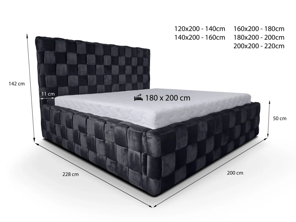 Maattolerantie +/- 2 cm. Hoogte hoofdsteun hetzelfde voor elke bedmaat.